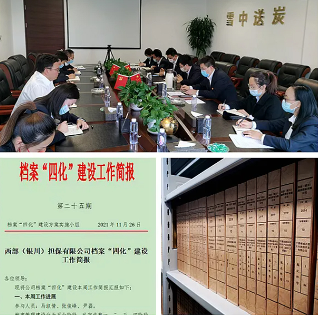 檔案是金融企業(yè)在業(yè)務(wù)辦理及服務(wù)活動(dòng)中形成并具有保存價(jià)值的載體記錄,在防控金融風(fēng)險(xiǎn)方面發(fā)揮著極其重要的作用。為進(jìn)一步強(qiáng)化公司風(fēng)險(xiǎn)管理水平,完善內(nèi)控制度、規(guī)范檔案管理工作,西部擔(dān)保秉持“對(duì)歷史負(fù)責(zé),為現(xiàn)實(shí)服務(wù),替未來著想”的建設(shè)理念,組織開展了檔案管理“四化”建設(shè)行動(dòng),以“軟硬件”同步實(shí)施為抓手,形成了“收集-整理-歸檔-保護(hù)-利用”全流程專業(yè)化的檔案資源體系,努力實(shí)現(xiàn)檔案管理的“規(guī)范化、標(biāo)準(zhǔn)化、整體化、統(tǒng)一化”的四化目標(biāo),目前已取得了階段性成果。
