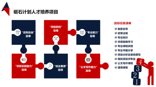 為持續(xù)優(yōu)化公司分層級(jí)人才培養(yǎng)機(jī)制,落地接班人計(jì)劃,結(jié)合公司發(fā)展戰(zhàn)略立足人才發(fā)展需要, 2022年,公司啟動(dòng)了“礪石計(jì)劃”——項(xiàng)目經(jīng)理人才培養(yǎng)項(xiàng)目。該計(jì)劃是公司對(duì)項(xiàng)目經(jīng)理層員工打造的一款標(biāo)準(zhǔn)化、產(chǎn)品化人才培養(yǎng)項(xiàng)目,通過建立榮譽(yù)勛章獎(jiǎng)懲體系、配備直線輔導(dǎo)人、設(shè)置“任務(wù)清單+動(dòng)態(tài)管理”的模式,敦促并跟進(jìn)項(xiàng)目經(jīng)理完成各項(xiàng)任務(wù)并達(dá)到考核標(biāo)準(zhǔn),方可成為一名合格的項(xiàng)目經(jīng)理?!暗Z石計(jì)劃”實(shí)施中重點(diǎn)結(jié)合工作實(shí)踐,設(shè)立有針對(duì)性培訓(xùn)課程,全面加強(qiáng)項(xiàng)目經(jīng)理人流程搭建、財(cái)務(wù)分析、風(fēng)險(xiǎn)防控、行業(yè)研究、項(xiàng)目研判等專業(yè)素質(zhì),提升獨(dú)立承做業(yè)務(wù)能力,挖掘其內(nèi)在潛能,夯實(shí)基本功,打造懂企業(yè)、善分析、能落地的優(yōu)秀項(xiàng)目經(jīng)理人,使個(gè)人發(fā)展與公司發(fā)展緊密協(xié)同,保證公司人才庫動(dòng)態(tài)管理,支持公司創(chuàng)新發(fā)展。